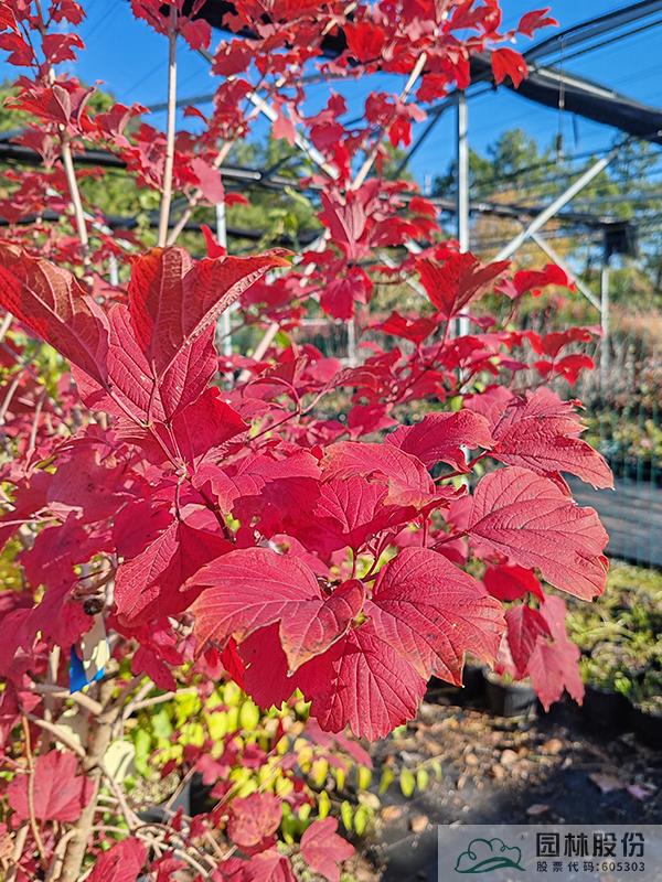 忍冬科莢蒾屬,叢生性落葉灌木,高可達(dá)4米?;ò咨?,花期4-5月,果大而紅,觀果期長(zhǎng),可從7月持續(xù)到10月。葉掌狀,通常三裂,秋季一般9-10月葉色開始轉(zhuǎn)紅,11月達(dá)到最佳效果。歐洲莢蒾是莢蒾屬中秋色葉效果較好的一個(gè)種類,紅葉期來得比較早,且葉色最為鮮艷。該種病蟲害少,適應(yīng)性強(qiáng),耐寒,北方室外能正常生長(zhǎng)。生長(zhǎng)速度快,適合工程應(yīng)用或庭院觀賞。